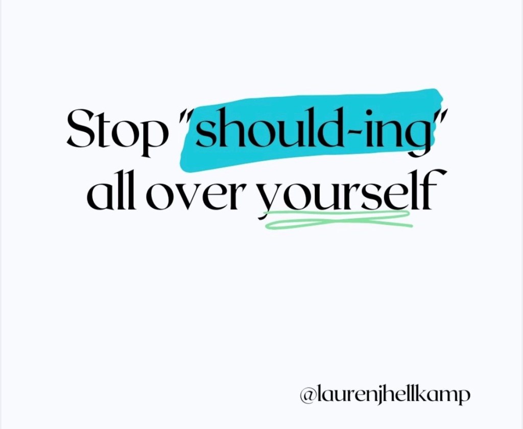 “Should-ing” on yourself means to put excess pressure on yourself to do something or be something. It leads to feelings of shame and keeps you from making the changes that you want to make.